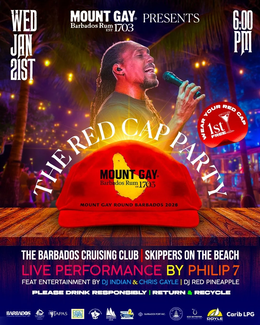 The most anticipated social event of the sailing calendar is almost here. Join us at The Barbados Cruising Club on Wednesday, January 21st, for the legendary Mount Gay Red Cap Party.